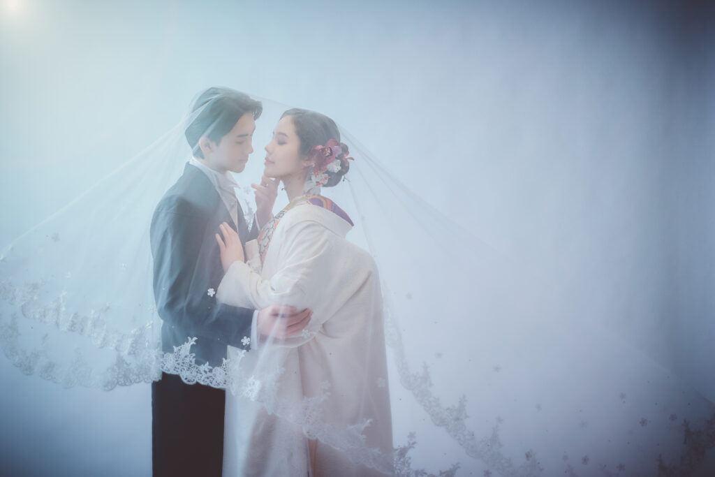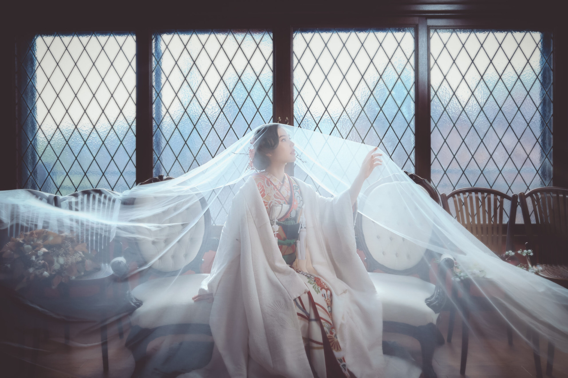 京都の風情ある町家と、英国アンティーク調のスタジオを舞台に、和装とドレスで叶う韓国フォトで特別な一日を。和装では、趣のある京町家での撮影を。白無垢や色打掛など、日本の伝統美が引き立つ京町家で。Canta Bella Dressでは、英国アンティークスタジオでの撮影を。ドレスが持つ繊細なディテールと華やかさが、まるで映画のワンシーンのような雰囲気を演出します。