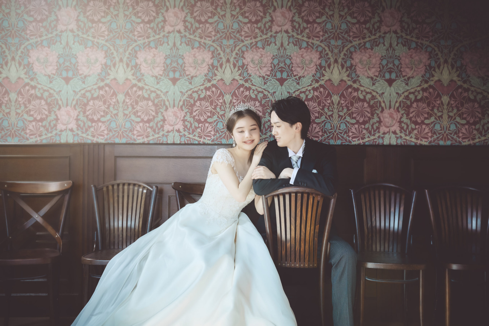 京都の風情ある京町家と、ヨーロピアンアンティークに彩られたスタジオで、まるで映画のワンシーンのような一日をお届けします。”主役のおふたりを彩るのは、韓国で人気の高い高級ウェディングドレスブランド Canta Bella dress。繊細なディテールと気品あるシルエットが、おふたりの魅力を最大限に引き立てます。