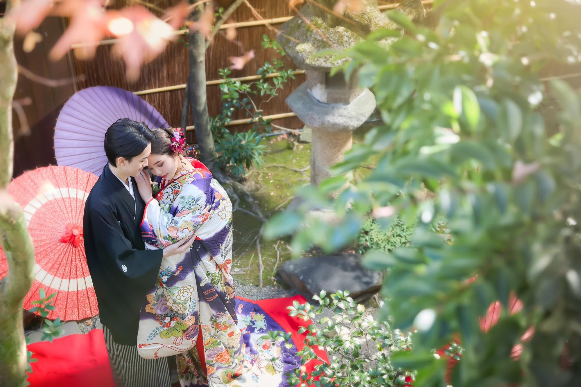 京都の趣ある町家と、英国アンティークの世界観が融合した特別な空間で、和装による韓国フォトを美しく残すプラン。伝統的な和装姿を、トレンド感のあるスタイリングで現代的に。京都らしい風情と、欧風のクラシカルな空間の両方を舞台に、人生の特別な節目を、まるで映画のワンシーンのように美しく記録いたします。